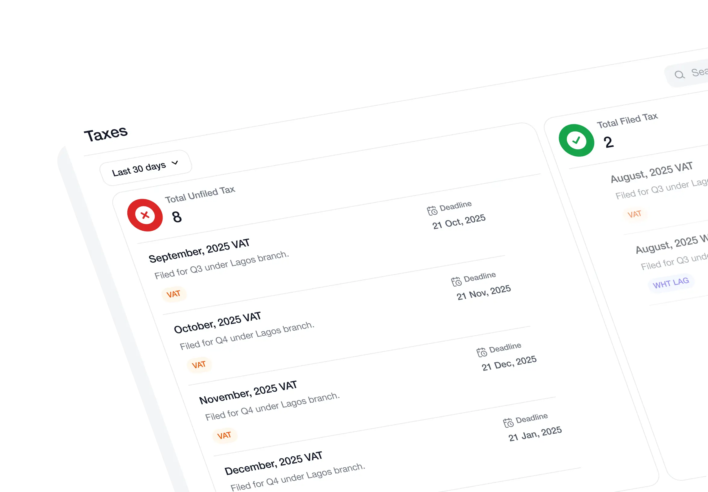 Our AI Agents are trained on Nigerian tax law and compute VAT (input/output), WHT based on recipients and service provided, stamp duties, and more. They handle exemptions, zero-rates, and file returns with your approval.
